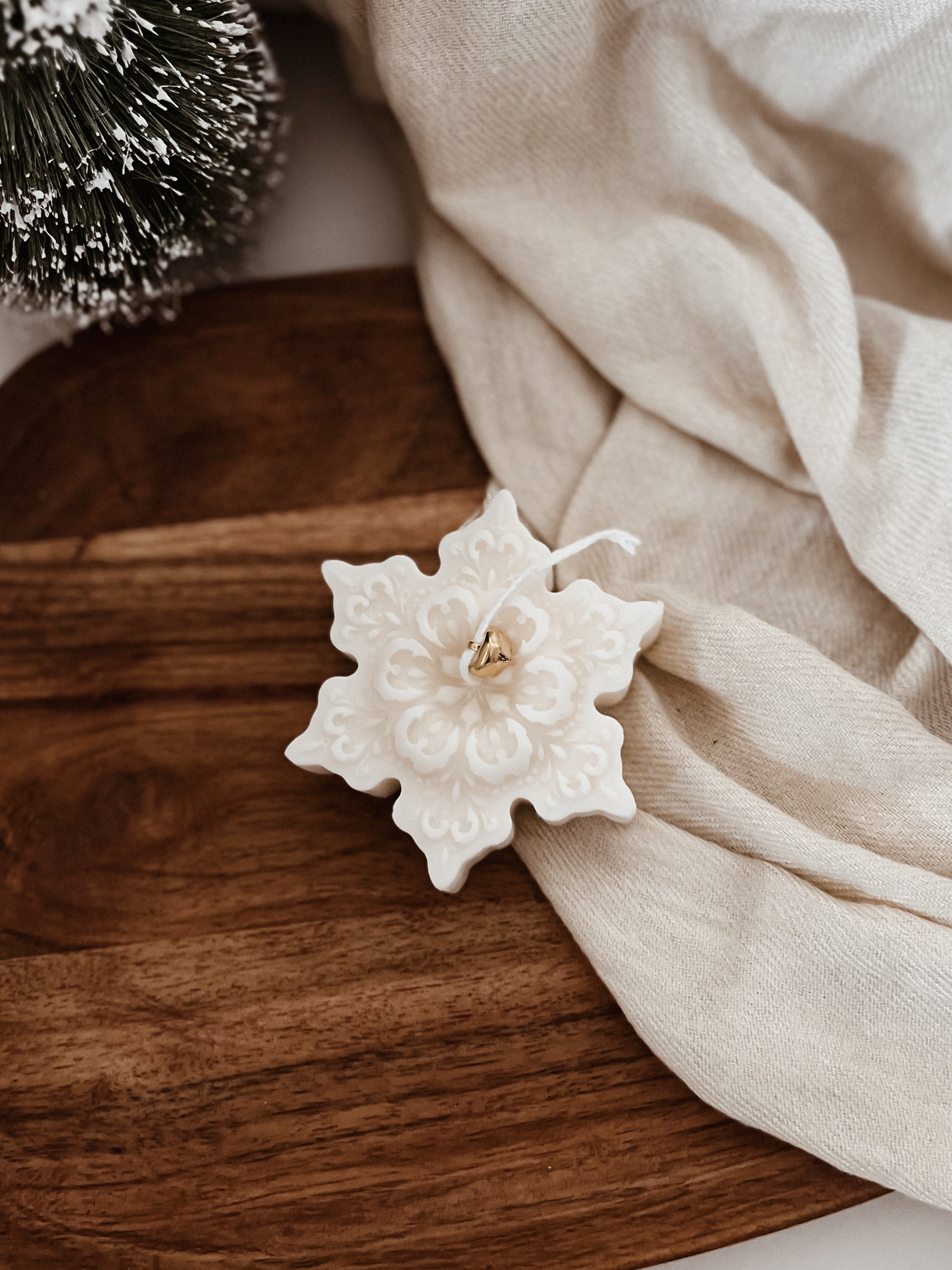 Inspirada na beleza única de cada floco de neve, esta vela artesanal da SRAAL é moldada à mão com cera de soja e um perfume suave que evoca o frescor do inverno.